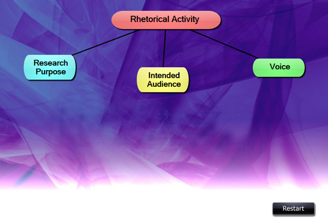 Provided in the activity below are some tips to help you understand the purpose, intended audience, and voice of your writing. To begin the activity, click on the image below. Once the new window opens, select the red Rhetorical Activity button, to begin the interaction.